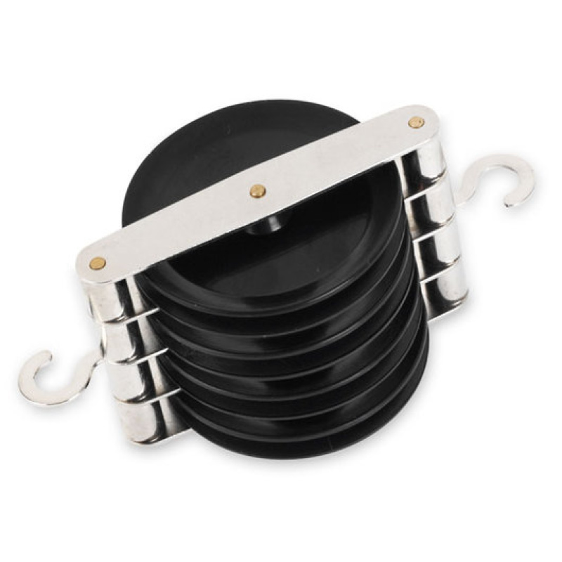 Product Name: Quadruple Parallel Pulley Size: 50mm Type: Parallel Number of Pulleys: Quadruple Material: Plastic with metal frame and two end hooks Groove Type: Deep V-Grooves Similar Products